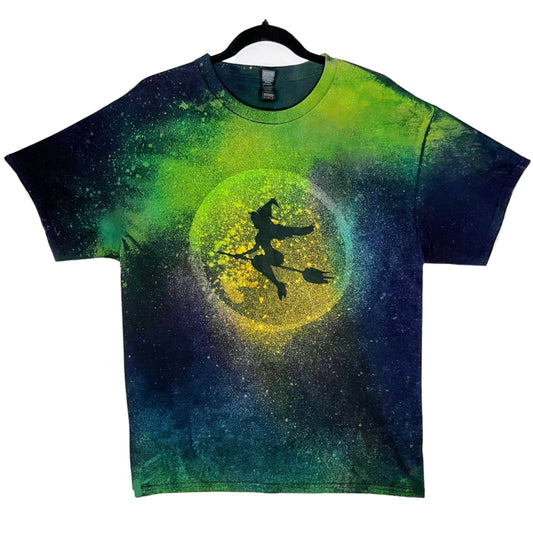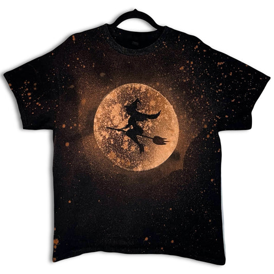 Reverse Dye Spooky Witch Full Moon Tee - Custom Acid Wash Halloween T Shirt
