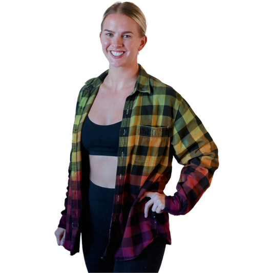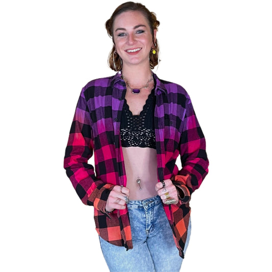 Oversized Purple Hot Pink Orange Flannel - Women's Tie Dye Color Fuse Buffalo Plaid Shirt