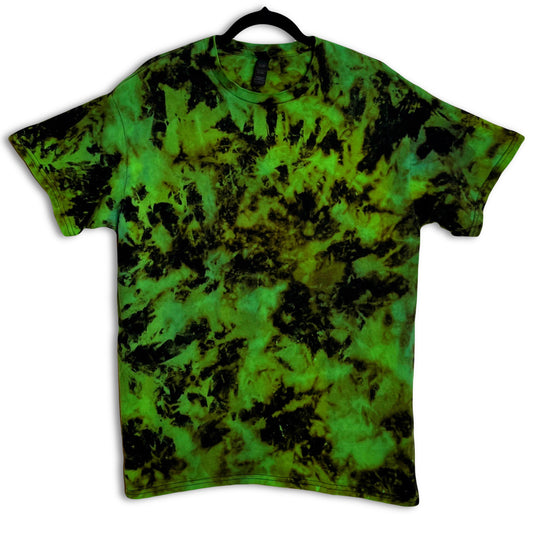 Spooky Acid Wash Tee - Custom Black and Green Reverse Tie Dye T-Shirt