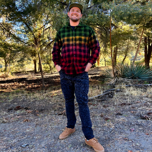 Men's Grunge Flannel - Earth Tone Tie Dye Rasta Buffalo Plaid Shirt