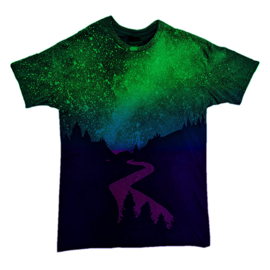 Reverse Dye Northern Lights Forest Tee - Custom Acid Wash T Shirt