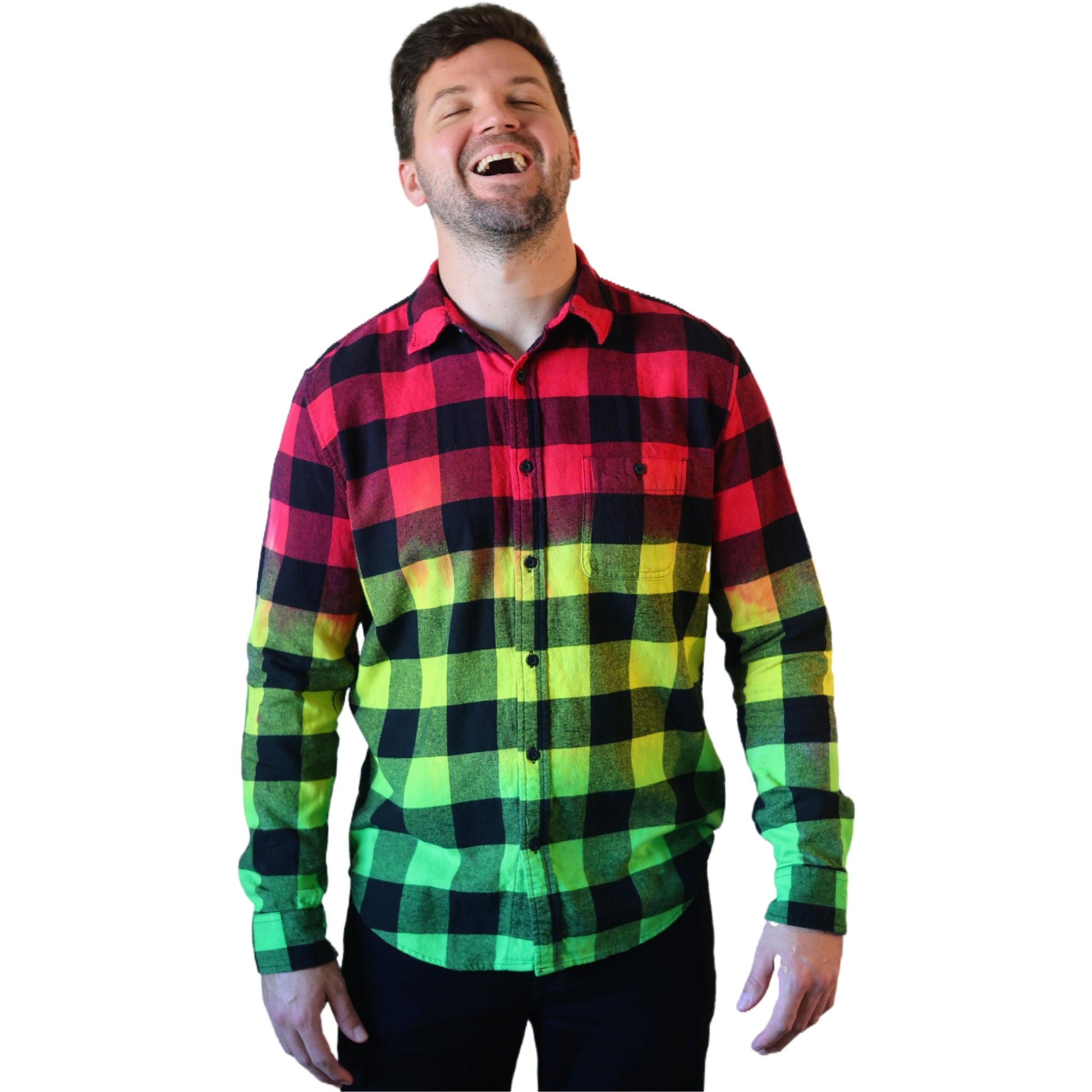 Men's Rasta Tie Dye Flannel - Custom Red Yellow Green Color Fuse Reggae Buffalo Plaid Shirt