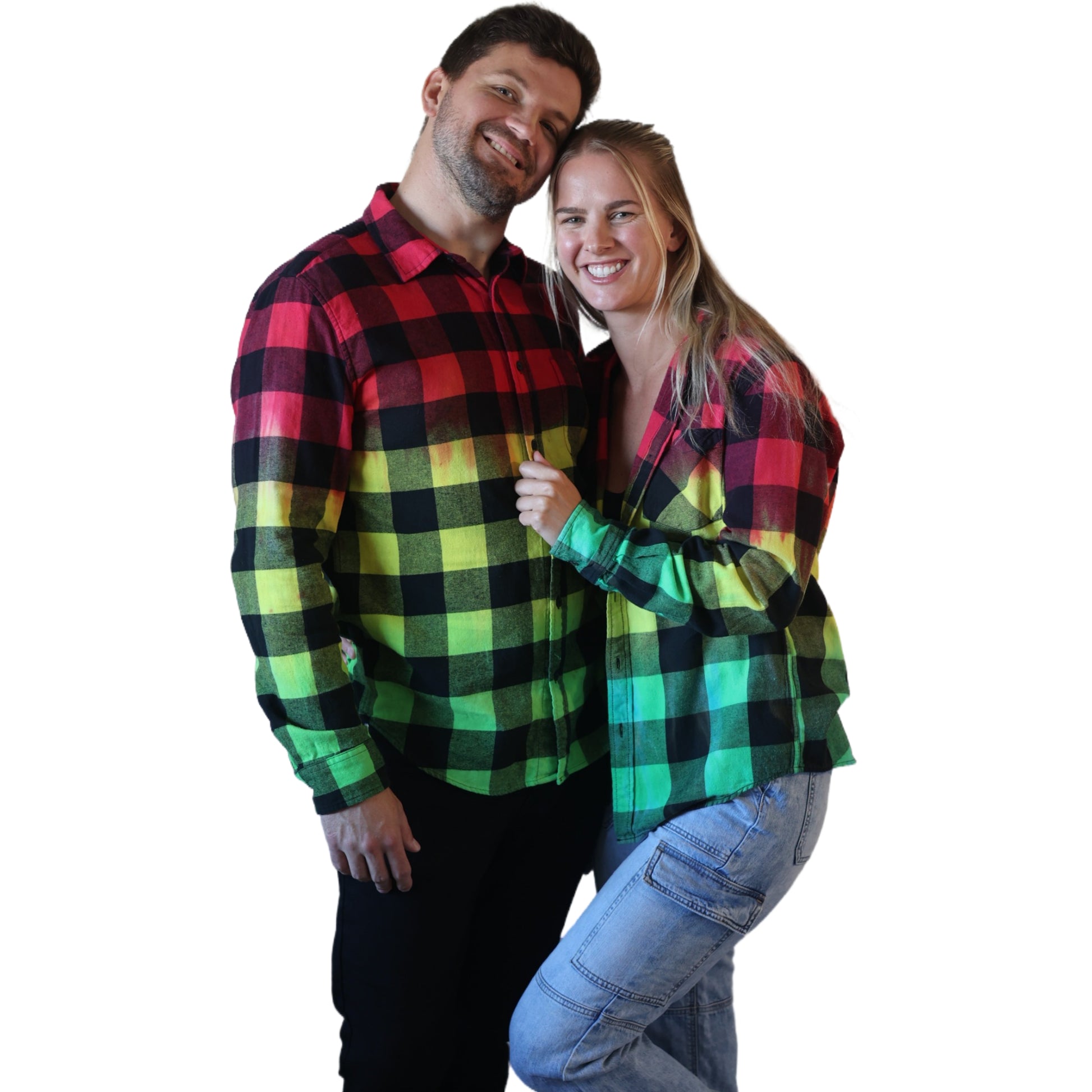 Gradient Reggae Tie Dye Buffalo Plaid Shirt, Dyed with Quality Fiber Reactive Dyes